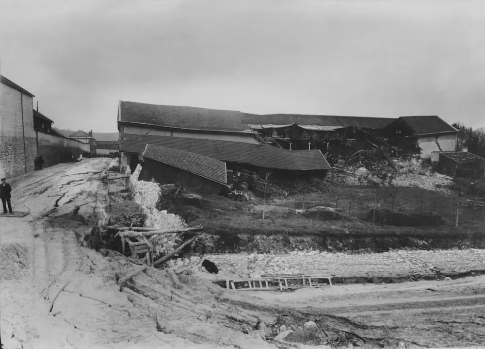 The account in Le Vigneron Champenois reported: « … at about two o’clock in the morning, a dull rumble similar to the sound of thunder, awoke Maurice Roger and his chef de cave, M. Leclerc, although it did not give them any concern. Two hours later they were alarmed by a much louder noise. They hurriedly got up to check and much to their amazement, they caught sight of the catastrophe which had caused the noise. Part of the immense celliers had caved in, causing the adjoining buildings to callapse, and destroying full barrels and bottles of wine and equipment stored there. When the workers arrived a few hours later, the disaster was complete. The ground had caved in at the centre of the new caves, demolishing the walls, causing fissures in the neighbouring walls, cracking the road surface in rue Henri le Large and rue Godart-Roger and making all the ground in the street cave into a depth of four meters. »