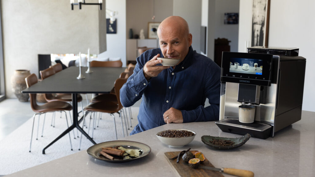 I en kaffeböna finns, precis som i ett rikt vin, nära tusen olika aromer. Att göra kaffebönorna rättvisa och lyfta fram alla komplexa smaker kräver sin teknik. Och det är just den förfinade tekniken och det tydliga smakfokuset som gör att Richard väljer Siemens espressomaskin EQ900 när han ska njuta av riktigt bra kaffe.