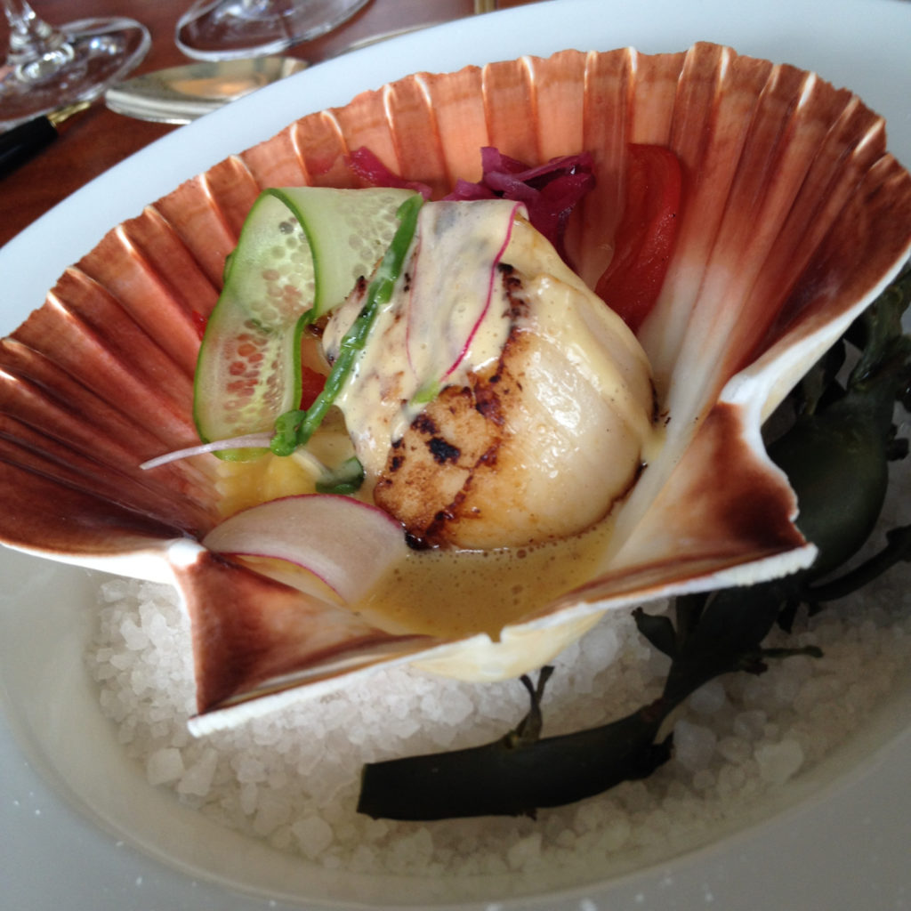 SEARED SCALLOP FROM FRÖYA, RAVIOLI, BAKED TOMATO & BEURRE BLANC