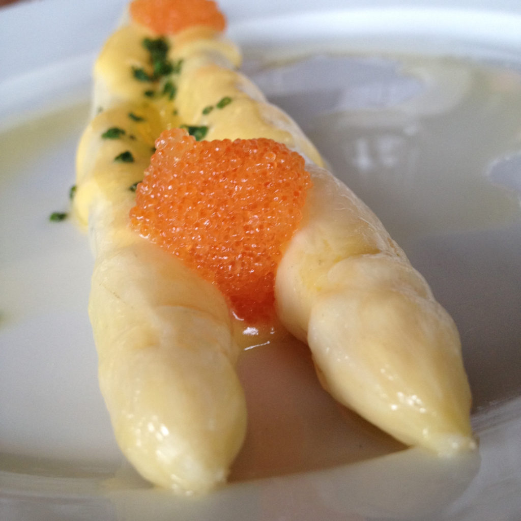 WHITE ASPARAGUS, HOLLANDAISE, BLEAK ROE FROM KALLIX