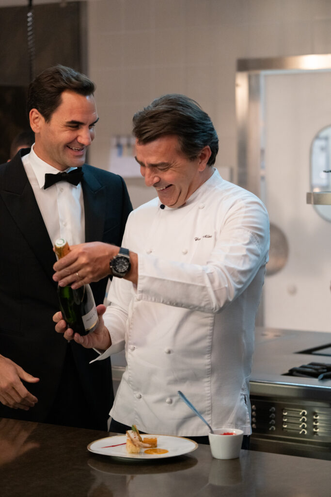 Roger graciously agreed to lend his immense acting—and comedic—talents, as the starring role in the 45-second film production. Unafraid of self-deprecation, Roger also channeled his elegant personal style and fancy footwork from the tennis court into the role of a sophisticated, smoking-clad host who, as the camera first captures him, is seen getting ready to welcome guests for a dazzling dinner at home.