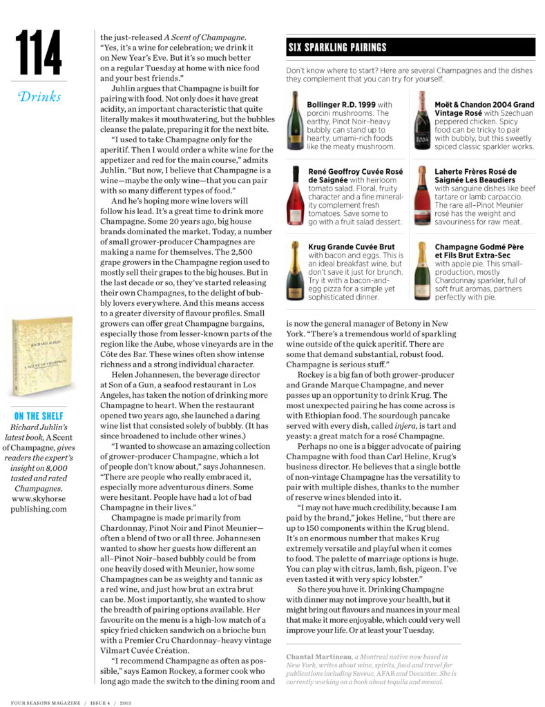 An article by Chantal Martineau from Four Seasons Magazine – will be out on December 13 in their winter issue, which is displayed in Four Seasons hotels and resorts until March (over 1 million readers).